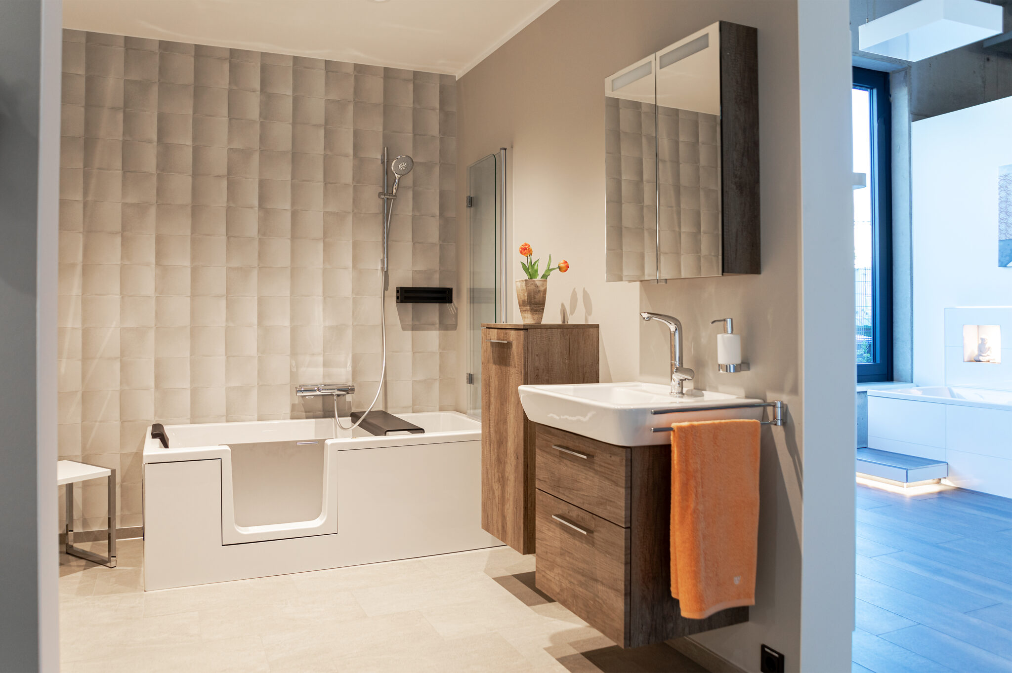 Erleben Sie unsere hochwertigen Badezimmerausstellungen hautnah mit unserem interaktiven 360-Grad-Rundgang! Tauchen Sie ein in modernes Design und höchste Qualität, während Sie sich bequem von zu Hause aus umsehen. Entdecken Sie jedes Detail und Material, das Ihr Traumbad ausmacht. Klicken Sie jetzt für die virtuelle Tour und lassen Sie sich inspirieren!